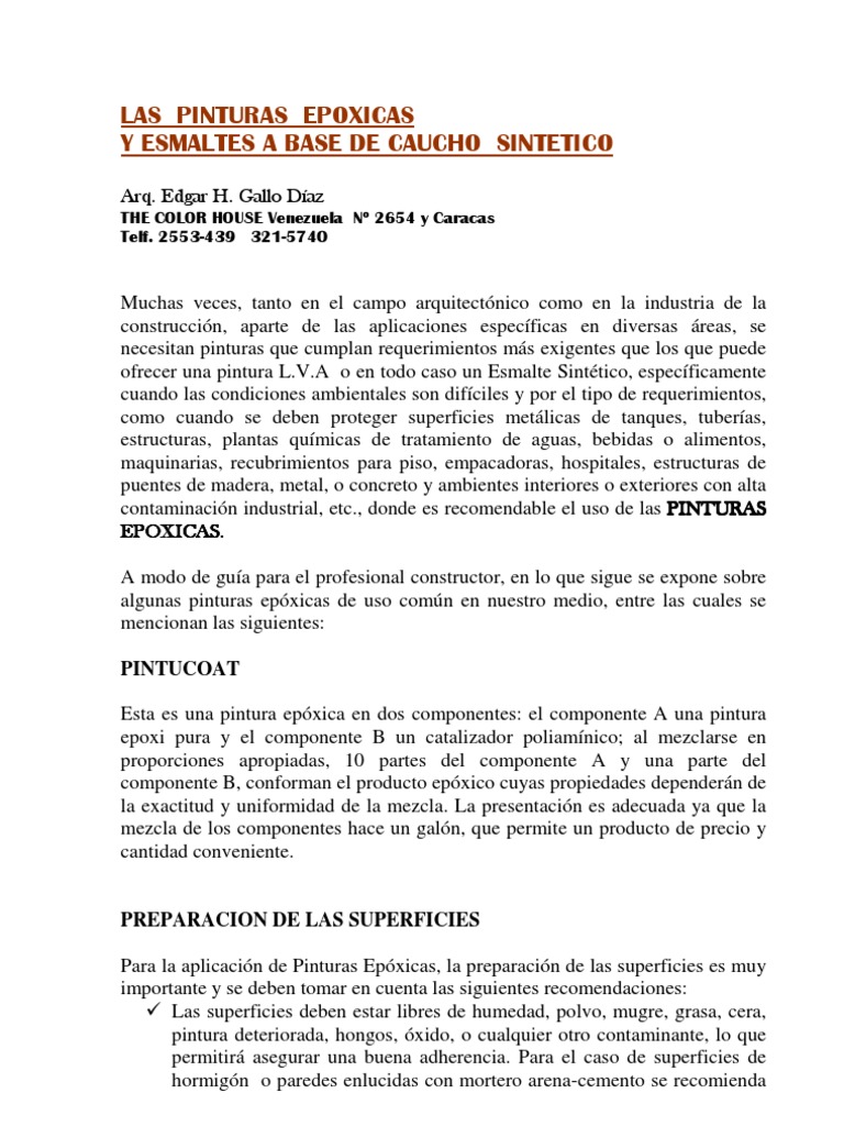 LAS PINTURAS EPOXICAS.pdf | Pintar | Epoxy